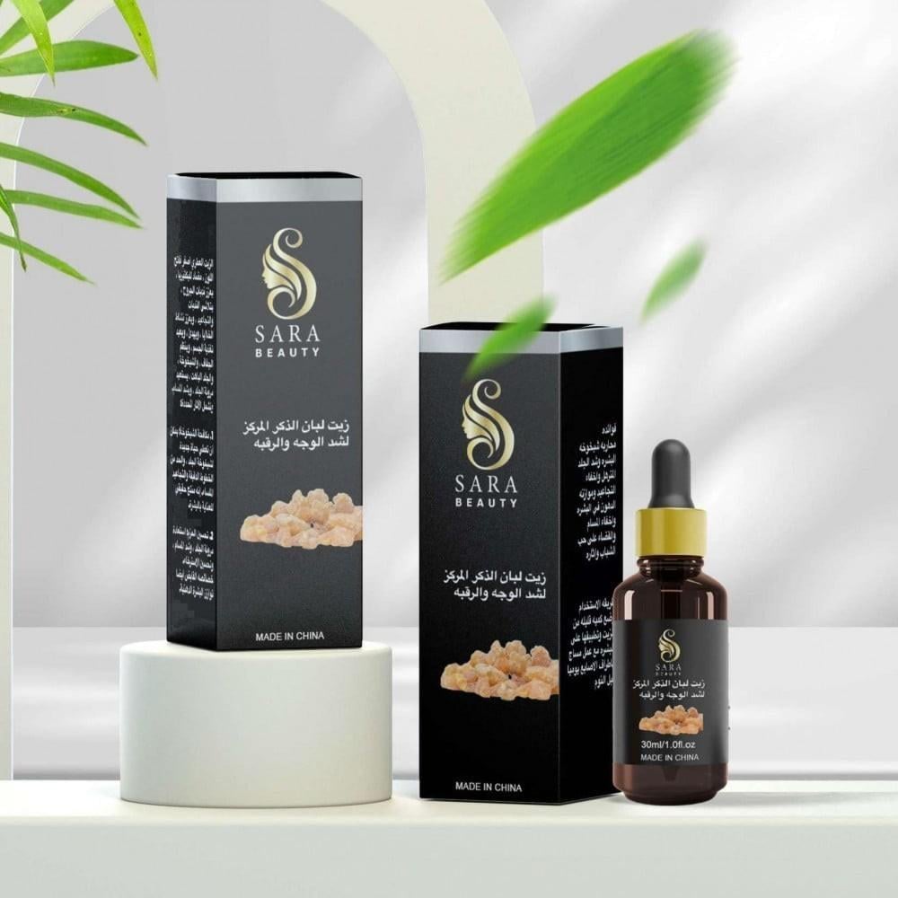 سيريوم زيت اللبان الذكر المركز من سارة بيوتي هو زيت طبيعي مصمم لشد الوجه والرقبة. يحتوي على زيت اللبان الذكر المركز، وهو زيت عطري معروف بخصائصه المضادة للشيخوخة.