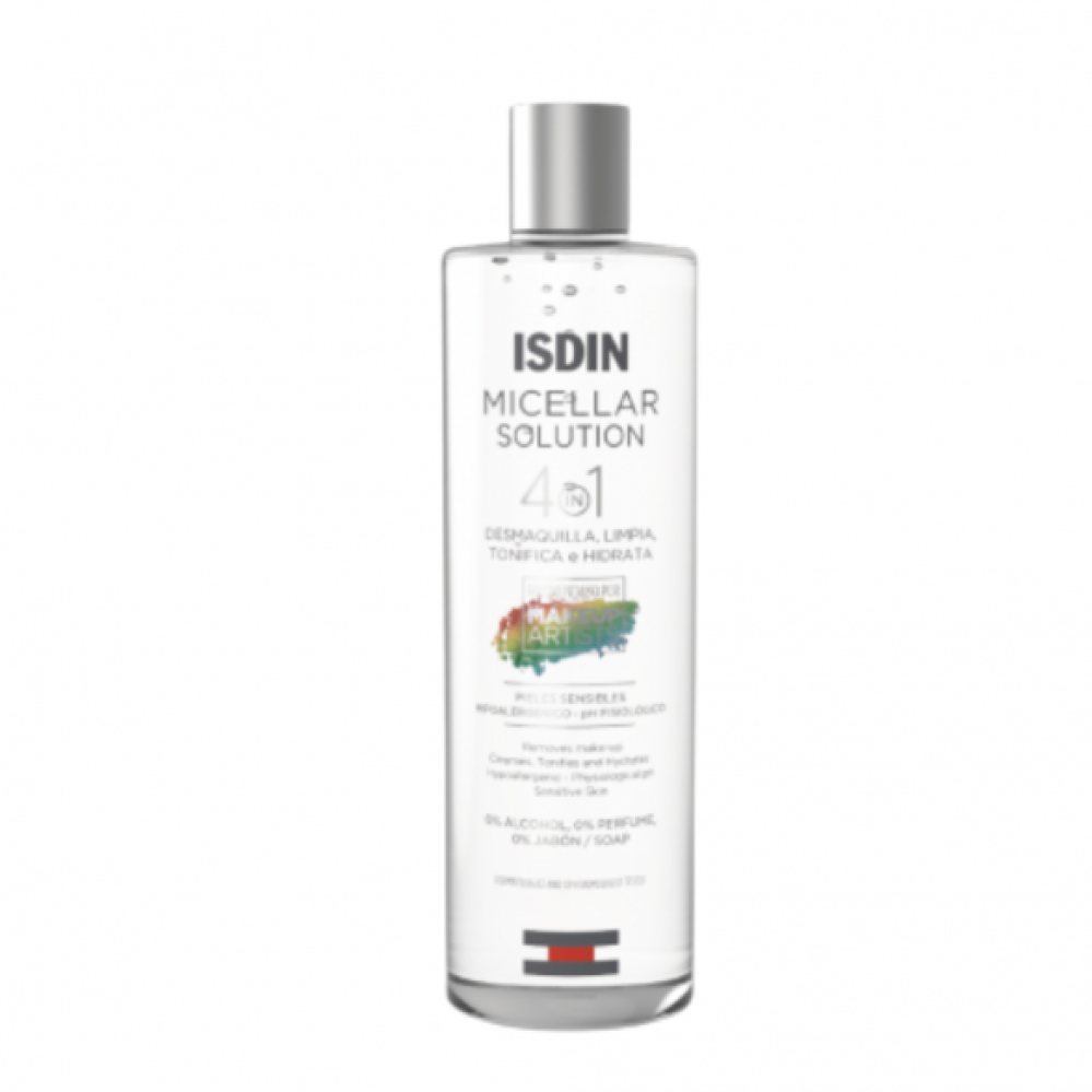 أول ماء ميسيلار ينصح به خبراء التجميل المحترفون. بحركة واحدة، يزيل بسهولة حتى المكياج الأكثر مقاومة، وينظف، ويوحد لون البشرة، ويرطبها بعمق، ويترك البشرة ناعمة، ومشرقة، وخالية من الشوائب. مع مكونات طبيعية المنشأ ومناسبة للبشرة الحساسة، تجعل من Isdin Micellar Solution الخيار الأفضل لبدء أي روتين للعناية بالبشرة.أفضل طريقة لبدء روتين جمال الوجه.ينظف الوجه بلطف دون الإضرار بحاجز الجلد.يزيل المكياج، ويزيل حتى المكياج المقاوم للماء ويدوم طويلاً.بحركة واحدة، يترك بشرة الوجه والعينين والشفاه متجانسة ومرطبة، وجاهزة للعناية اليومية بالوجه.