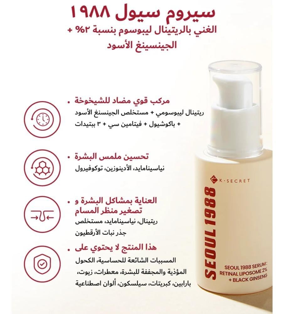 2 : سيروم سيول 1988 من كي سيكريت هو أكثر من مجرد سيروم، هو علاج فعّال لعلامات التقدم في السن بتركيبة كورية متطورة.