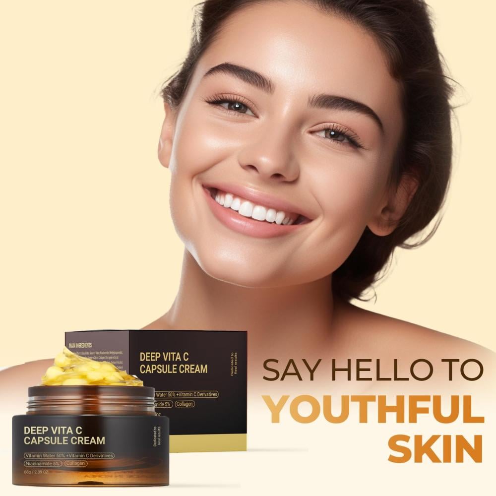 كريم الكولاجين بالكبسولات الذهبية: يجمع هذا الكريم بين كبسولة فيتامين C ثلاثية الأبعاد بتقنية متقدمة وقاعدة جل خفيفة، مما يعزز الإطلاق الدقيق لفيتامين C، الكولاجين، والمكونات الفعالة الأخرى، لتوفير فوائد حماية وترطيب فعّالة للبشرة. كريم كبسولات الكولاجين بفيتامين C يضمن تجربة عناية فائقة بالبشرة مع كل استخدام.