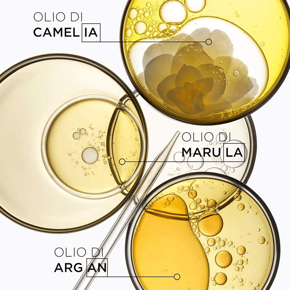 غني بزيت الكاميليا الذي يساعد على تنعيم ألياف الشعر ليوفر لمعان فائق للشعر.