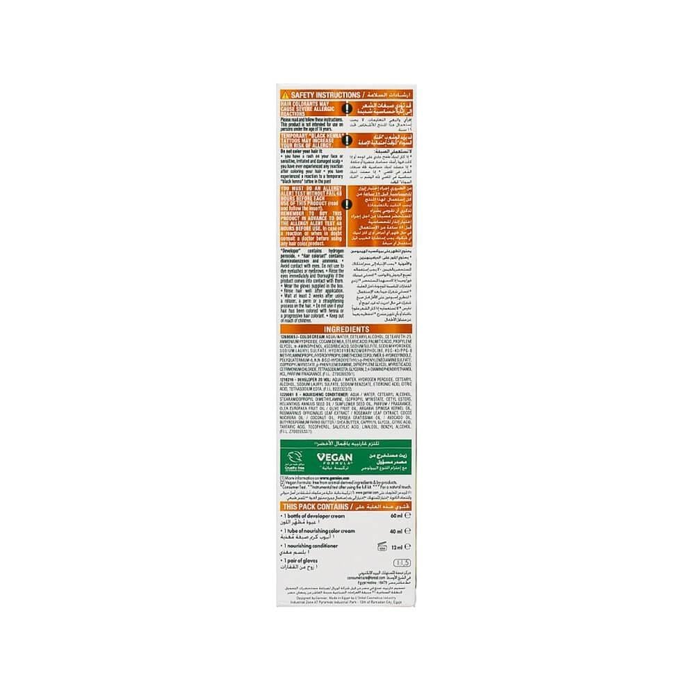 غارنييه كولر ناتشورالز صبغة شعر تقدم تغطية مثالية للشعر الأبيض ولون غني يدوم طويلاً. تحتوي الصبغة على بلسم مغذي مكون من مزيج من 3 زيوت طبيعية (زيت الزيتون، زيت الأفوكادو، وزيت الشيا) الذي يساعد في تغذية الشعر وحمايته خلال عملية الصبغ. تمنح الصبغة شعرك لمعانًا ونعومة مع لون طبيعي وجذاب.