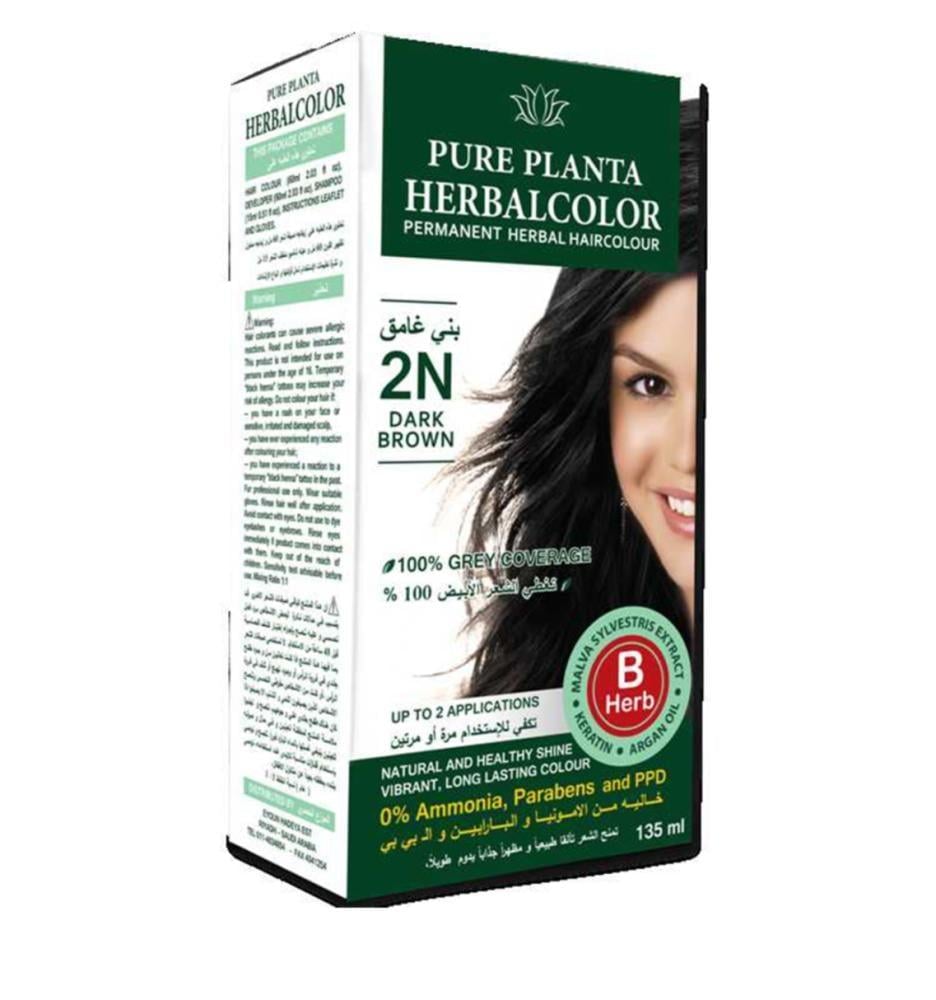 عبارة عن جل لتلوين الشعر بدرجة بني إن 2 لتلوين الشعر خالي من الأمونيا بمكونات طبيعية بخلاصة 8 أعشاب تتمتع بمكوناتها المفيدة للشعر في التجميل و التغذية، يعطي نتيجة مرضية و يعمل على تغطية الشعر الأبيض بنسبة 100%، تكفي كمية العبوة لللإستخدام مرتين ، خالي من المواد المسببة للحساسية