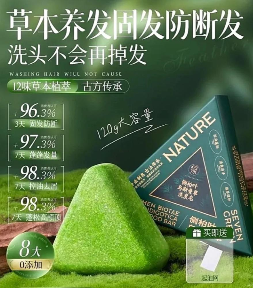 صابونة عشبية طبيعية 100٪ من Nature Seven Green، صُممت خصيصًا لتحفيز نمو الشعر وتقويته من الجذور حتى الأطراف.